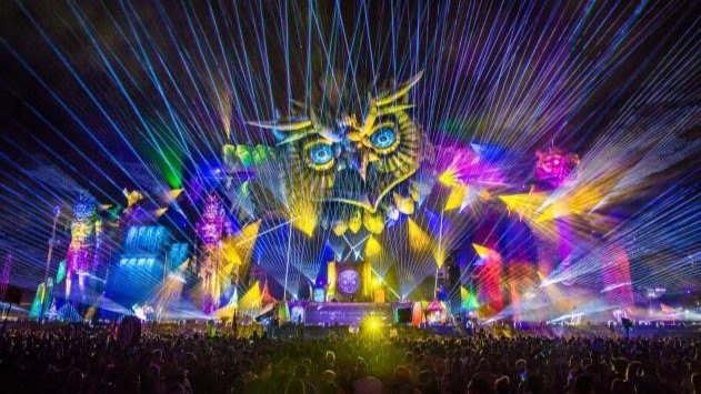 The laser lighting creates stunning visual effects that synchronize with music, enhancing the overall atmosphere of the music festival.